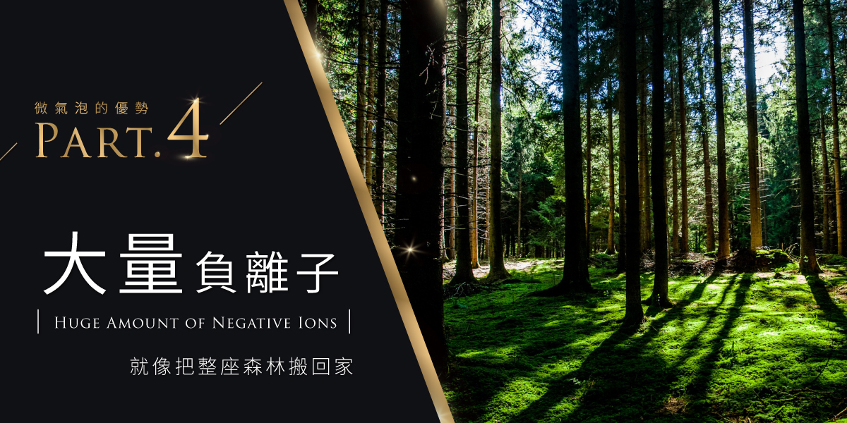 能產生大量約0.1um的微米氣泡,產生10-20萬負離子,如森林瀑布般的用水環境。