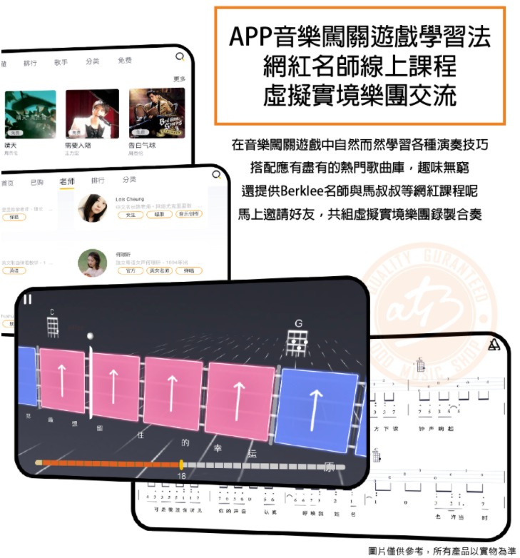 APP闖關遊戲學習法,擁有上百首熱門歌曲及網紅名師課程