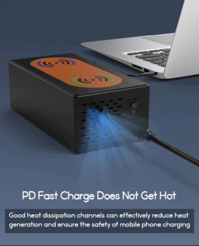 -同時使用8個輸出充電,PD65W、PD20W、QC3.0及兩個15W無線充都不會降速,保持全速充電