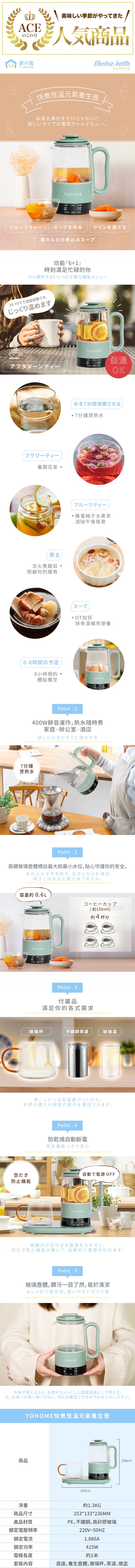 7.包裝清單:底座,養生壺體,玻璃杯,茶濾,燉盅