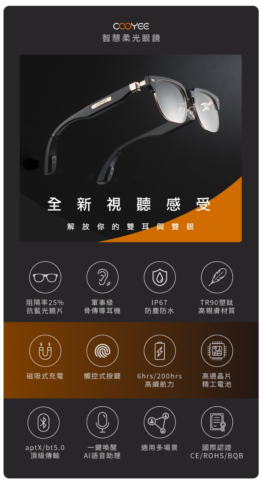台灣品牌Cooyee推出的AI防藍光智能眼鏡,一次解決兩大問題!