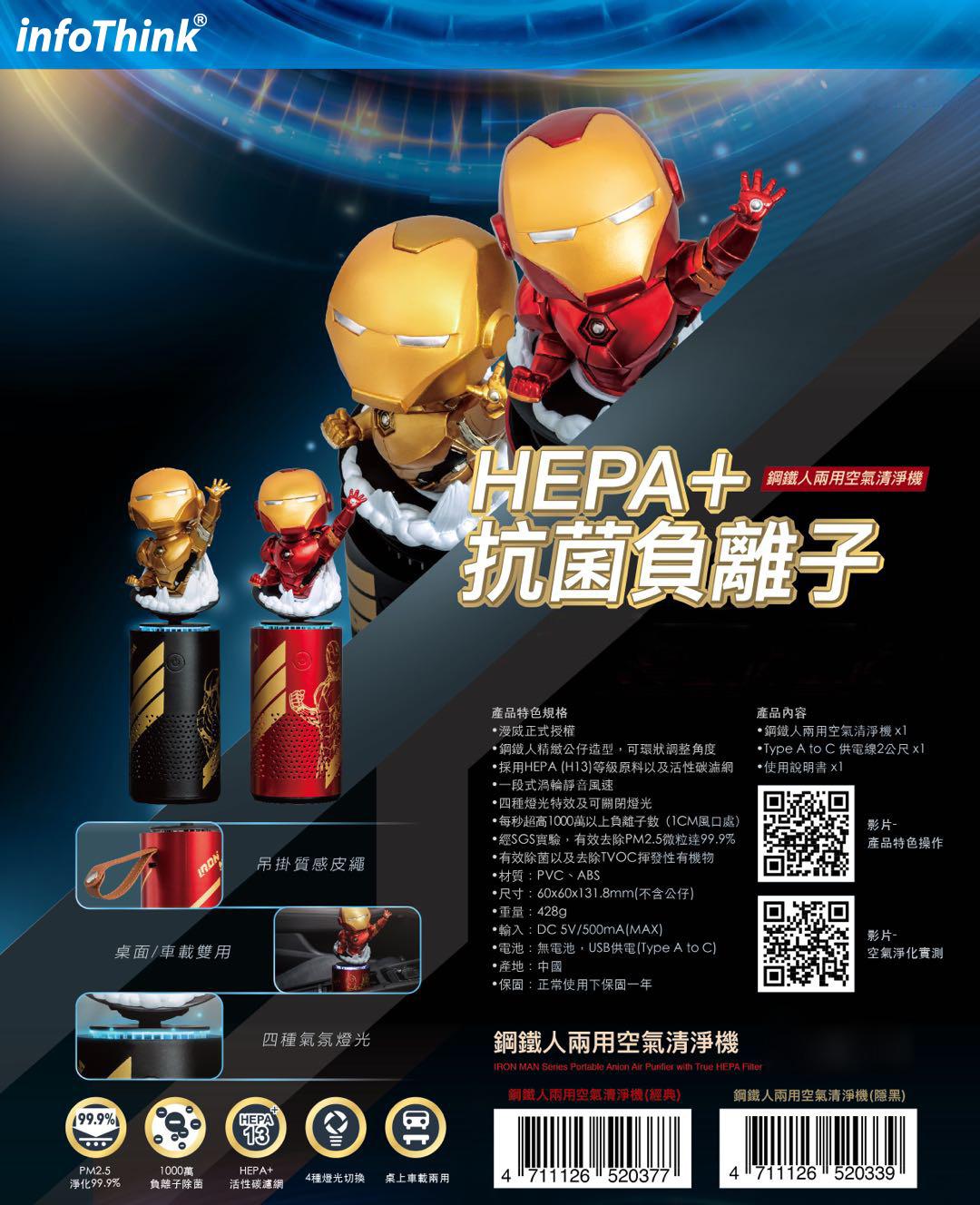 鋼鐵人系列 USB渦輪負離子空氣清淨機 (隱黑)及(經典)