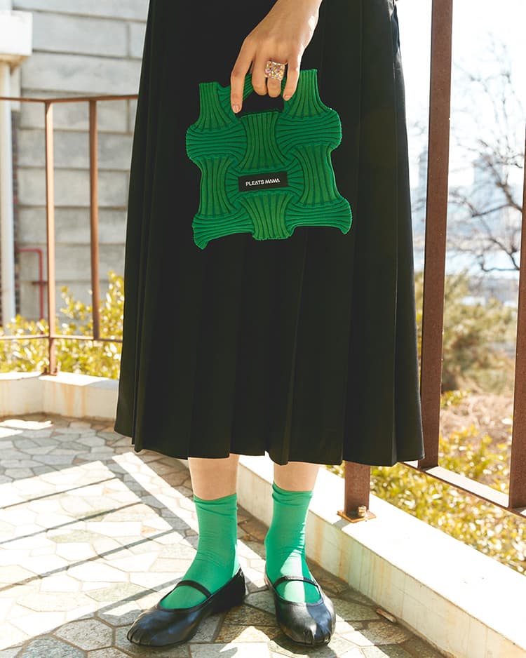 PLEATS MAMA - MINI BOW BAG (BRIGHT GREEN)