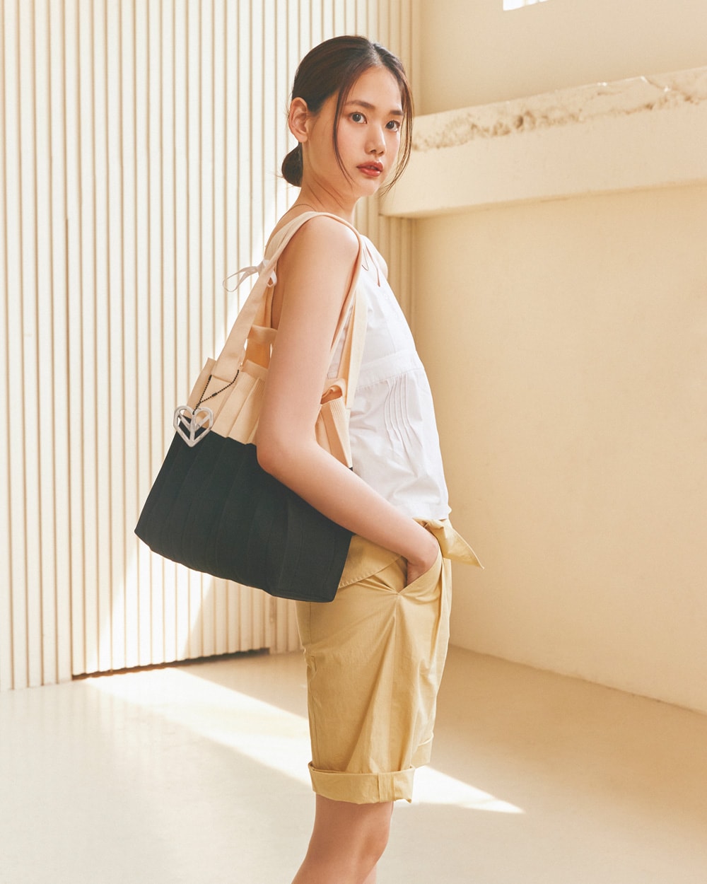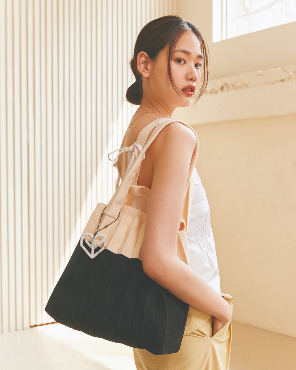 PLEATS MAMA - Two Way Shopper Bag (White Black)
