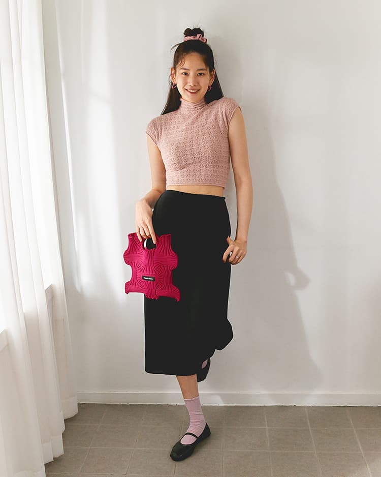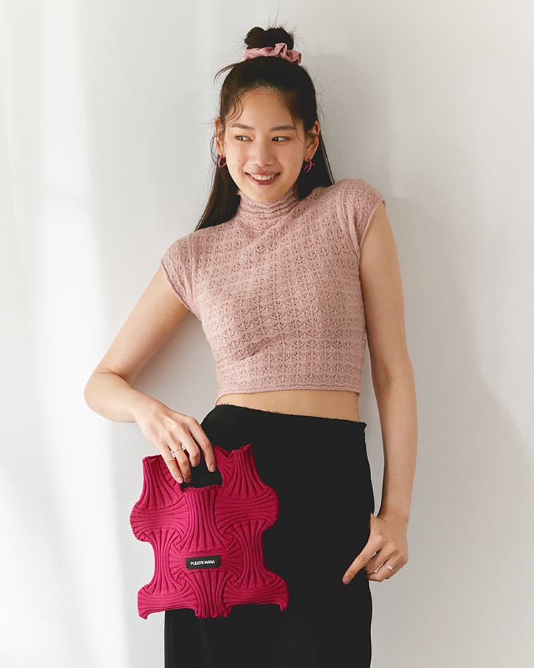 PLEATS MAMA - BOW BAG (DEEP PINK)