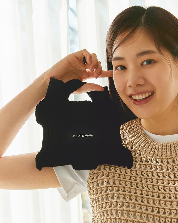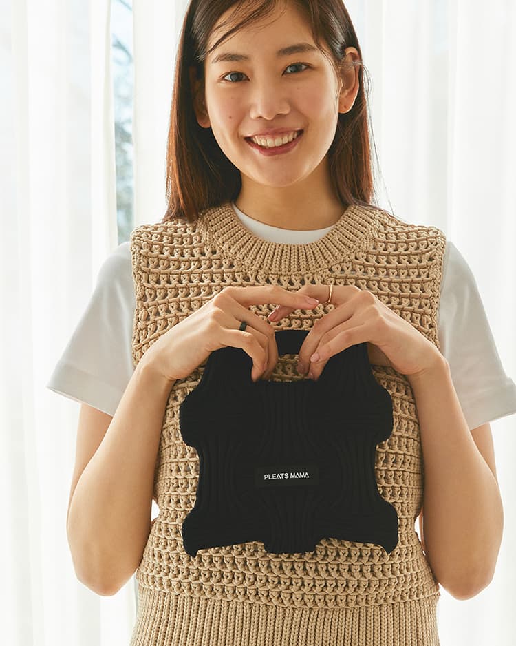PLEATS MAMA - MINI BOW BAG (BLACK)