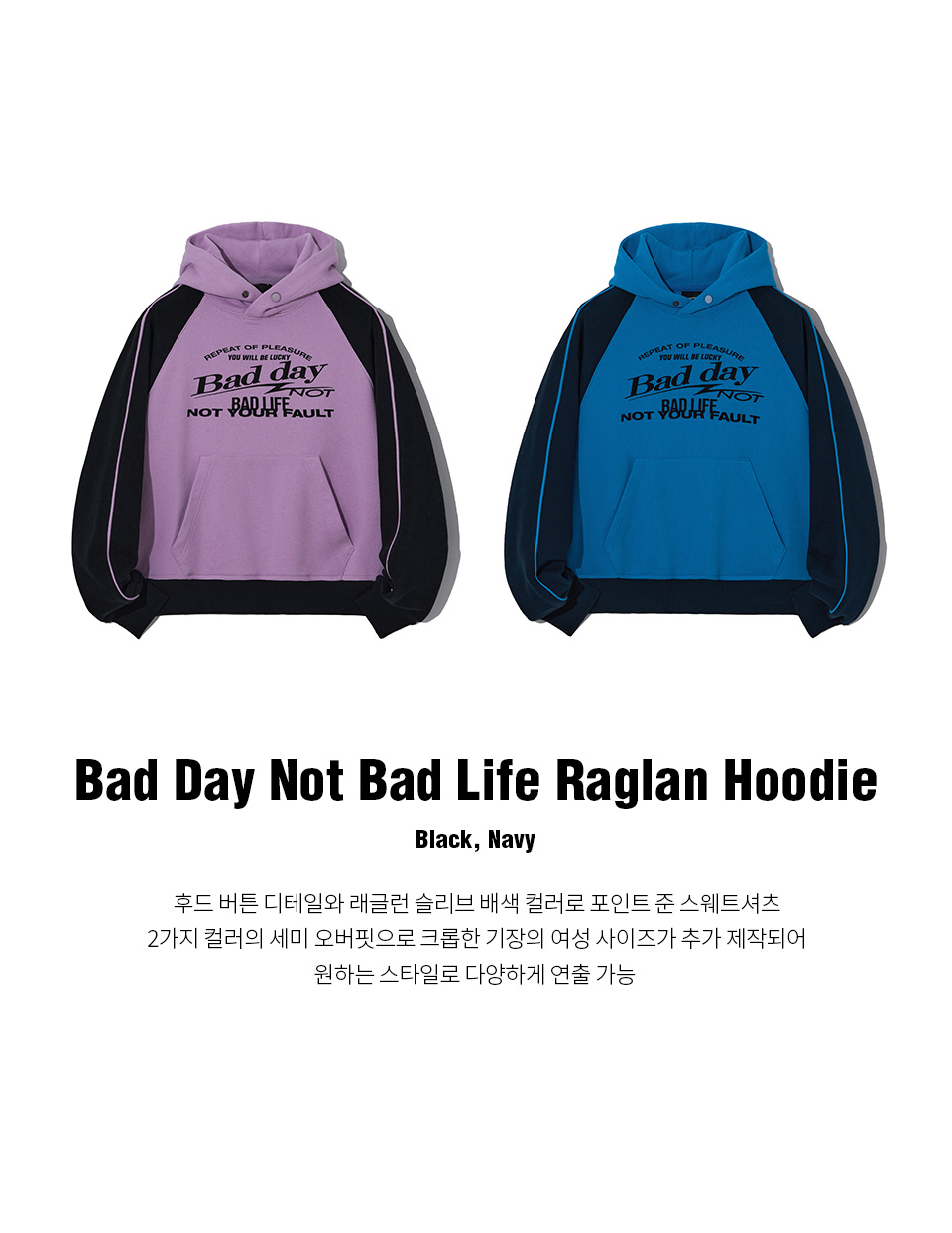 韓國GROOVE RHYME - (W) BAD DAY NOT BAD LIFE RAGLAN HOODIE (BLACK)|WENDY同款