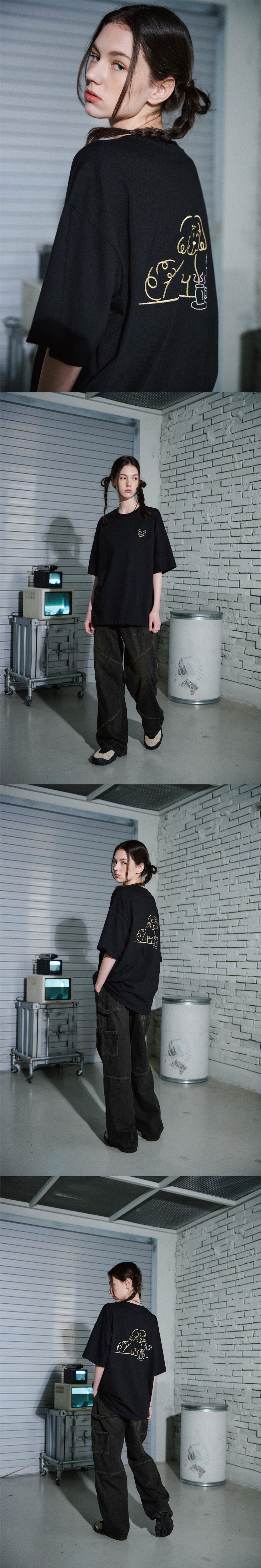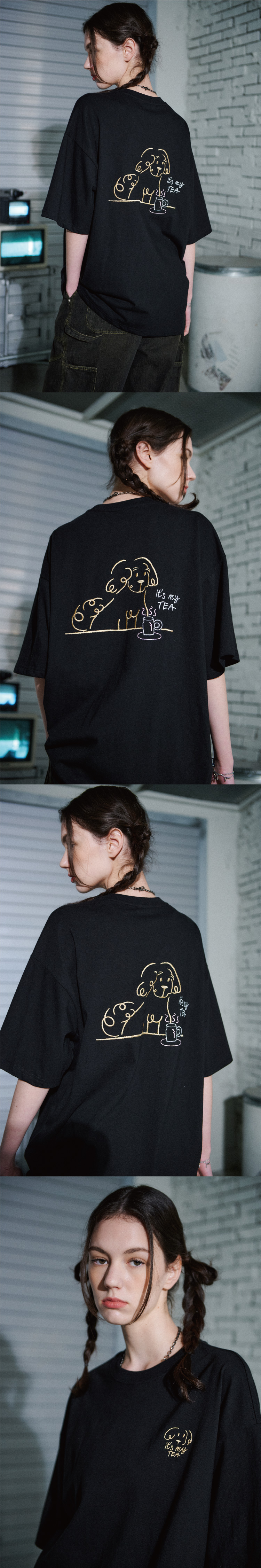 韓國CPGN STUDIO - TEA TIME Embroidery Short Sleeve Tee Black